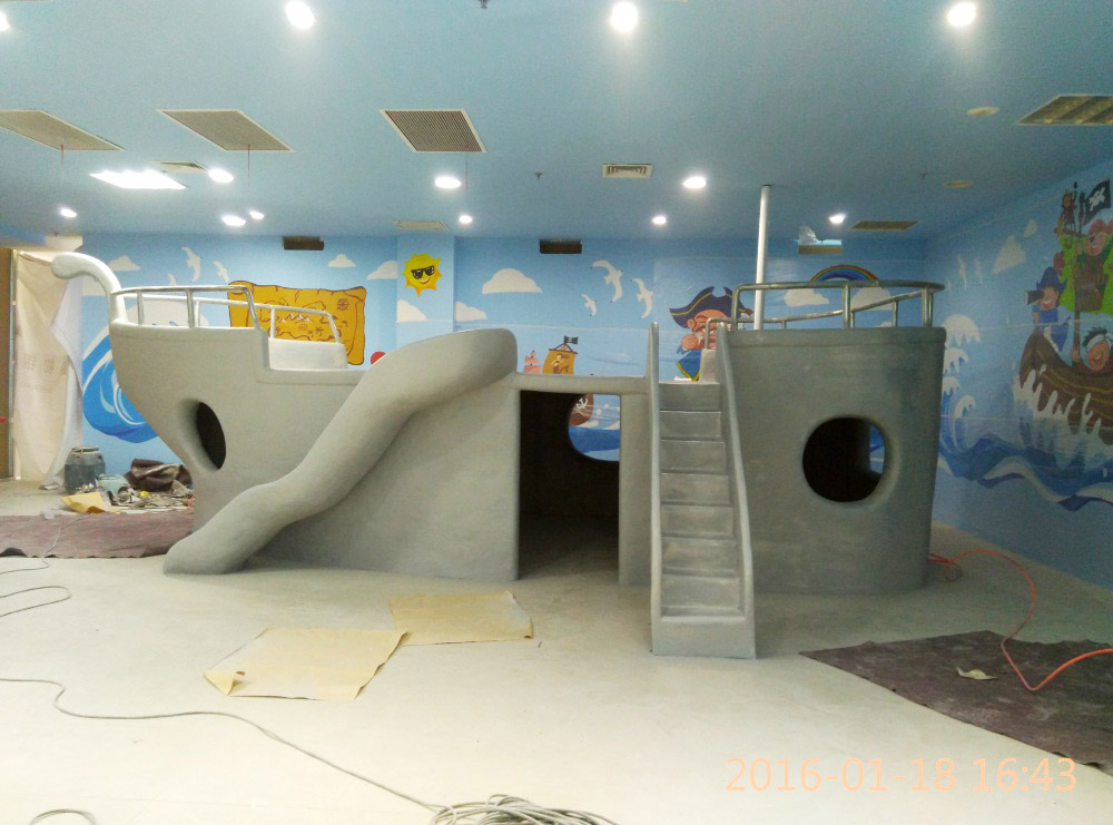 項目案例->大型玻璃鋼游樂船雕塑—濱州銀座黃河店4樓