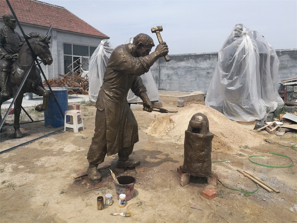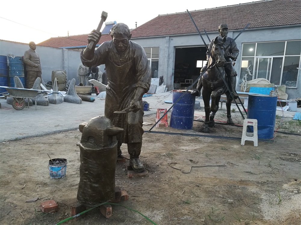 雕塑說明:騎馬將軍雕塑高2.6米,成品為玻璃鋼工藝制作。該組雕塑是雕塑公司拋開市場環(huán)境,真正藝術(shù)化創(chuàng)作的珍貴作品。打鐵匠雕塑,高1.9米,同樣采用玻璃鋼工藝制作。兩組雕塑的泥塑均有雕塑師張凱完成。未經(jīng)允許,嚴禁把本相冊圖片用于商業(yè)用途。