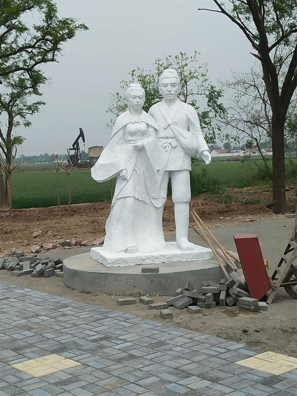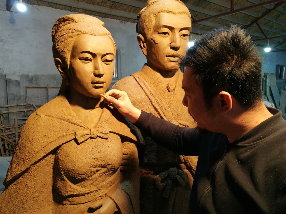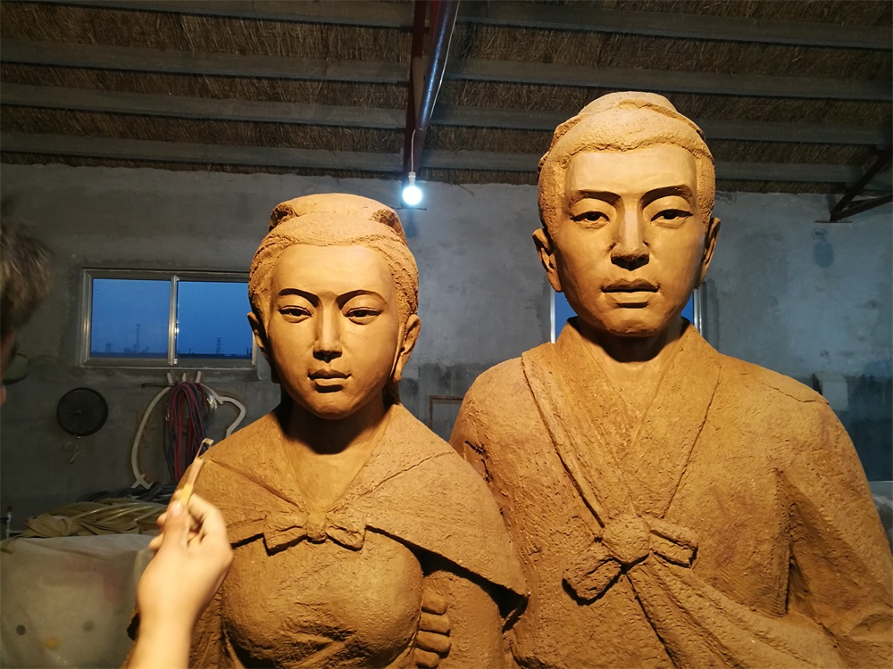 雕塑說(shuō)明:雕塑高2.6米,以董永與七仙女的故事為題材創(chuàng)作。雕塑采用玻璃鋼雕塑工藝,表面仿石材效果。該雕塑由泥塑師王慶波創(chuàng)作,未經(jīng)允許嚴(yán)禁把圖片用于商業(yè)用途。