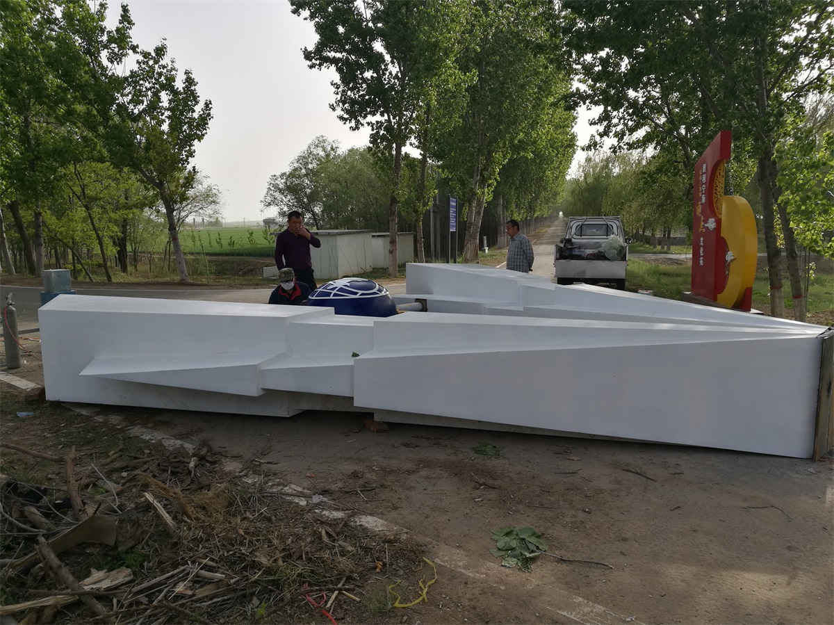 雕塑整體呈扇形構(gòu)造,代表黃河三角洲扇形外貌;兩側(cè)形似利劍,寓意治黃工作者敢于“亮劍”的拼搏精神; 中間球形,寓頂點(diǎn)之意;其上印制有黃河水利委員會(huì)標(biāo)志,圍繞十只和平鴿。寓意以治黃事業(yè)為中心、人民幸福、和平安寧、生態(tài)保護(hù)、空間均衡;主體色彩以紅、黃、藍(lán)搭配。紅色代表黨建引領(lǐng),黃、藍(lán)象征海河交匯。寓意治黃事業(yè)在中國(guó)共產(chǎn)領(lǐng)導(dǎo)下開(kāi)創(chuàng)新篇章。
