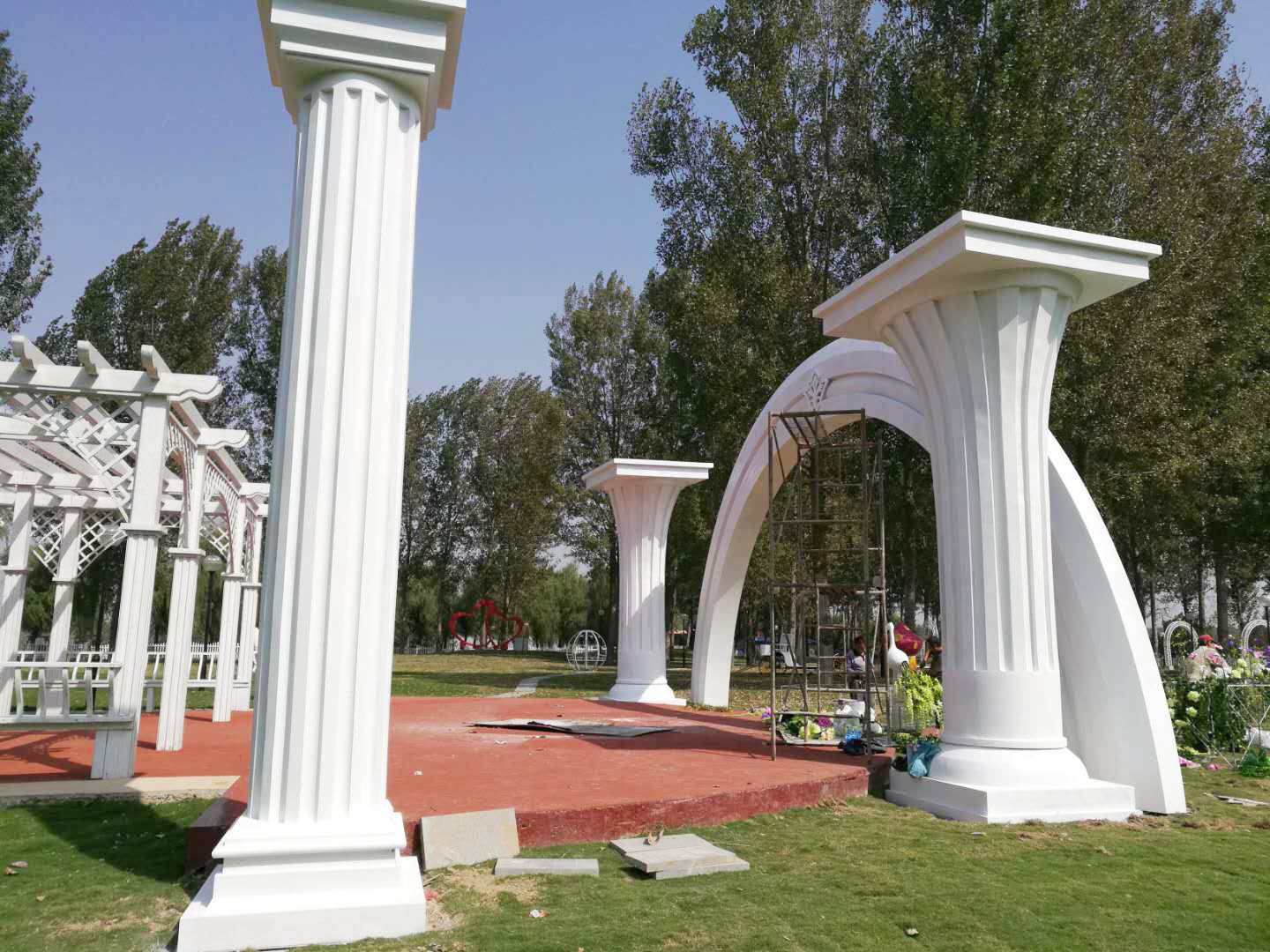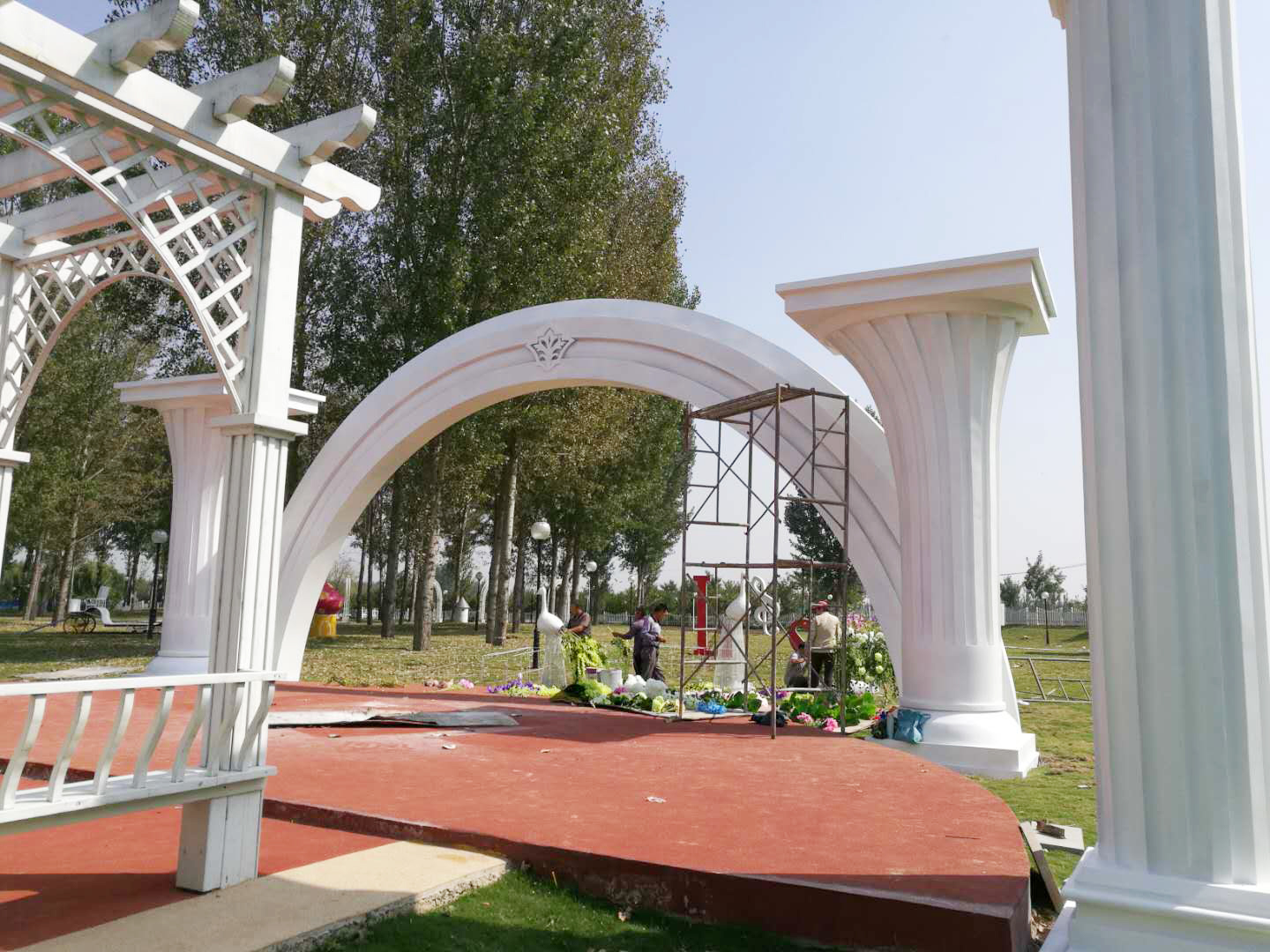 1、施工內(nèi)容:婚慶花柱拱門(mén)不銹鋼雕塑、不銹鋼音樂(lè)符號(hào)雕塑、婚慶景觀(guān)馬車(chē)雕塑、不銹鋼百年好合雕塑、玻璃鋼材質(zhì)熱氣球雕塑、大型景觀(guān)風(fēng)車(chē)、玻璃鋼飛馬雕塑、孔雀雕塑、字母love組合雕塑等一系列婚慶景觀(guān)雕塑。