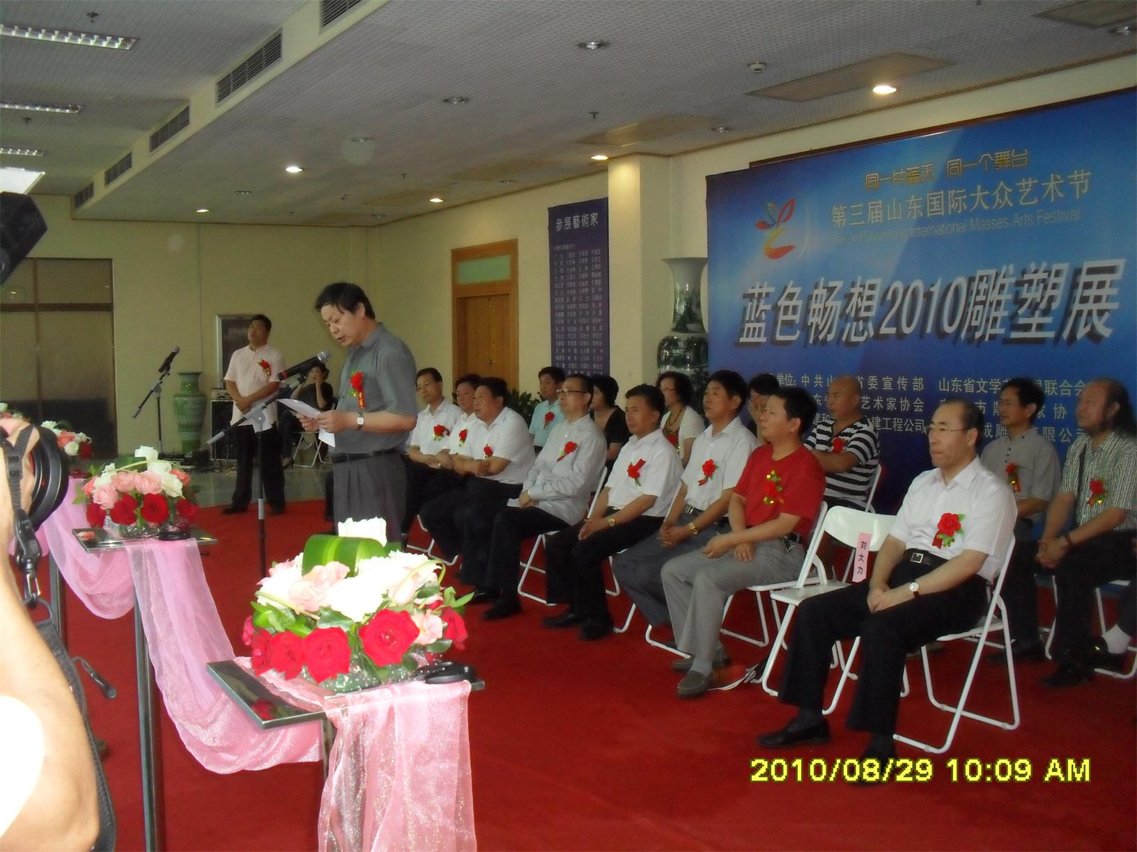 藍(lán)色暢想2010雕塑,2010年8月29日,由中共山東省委宣傳部、山東省文學(xué)藝術(shù)界聯(lián)合會主辦,山東省雕塑藝術(shù)家協(xié)會、青島雕塑家協(xié)會承辦的第三屆山東國際大眾藝術(shù)節(jié)--藍(lán)色暢想2010雕塑展在山東省圖書館隆重開幕。 "藍(lán)色暢想2010雕塑展"吸引了省內(nèi)外大批中青年雕塑家的參與,展覽共收到101位雕塑藝術(shù)家的126件入圍作品。其中省內(nèi)中青年雕塑藝術(shù)家占絕大多數(shù),圍繞"藍(lán)色"主題,堅持創(chuàng)造、創(chuàng)新理念,創(chuàng)作了大批優(yōu)秀的雕塑藝術(shù)作品,語言生動,內(nèi)容多樣,借助不同材質(zhì)和多元化的藝術(shù)風(fēng)格,對藍(lán)色精神進(jìn)行了深入的闡釋。李友生的《海風(fēng)倩影》、王未的《藍(lán)色暢想》、譚信國的《蘋果系列》等作品,均對雕塑藝術(shù)內(nèi)涵進(jìn)行了深入的探索。