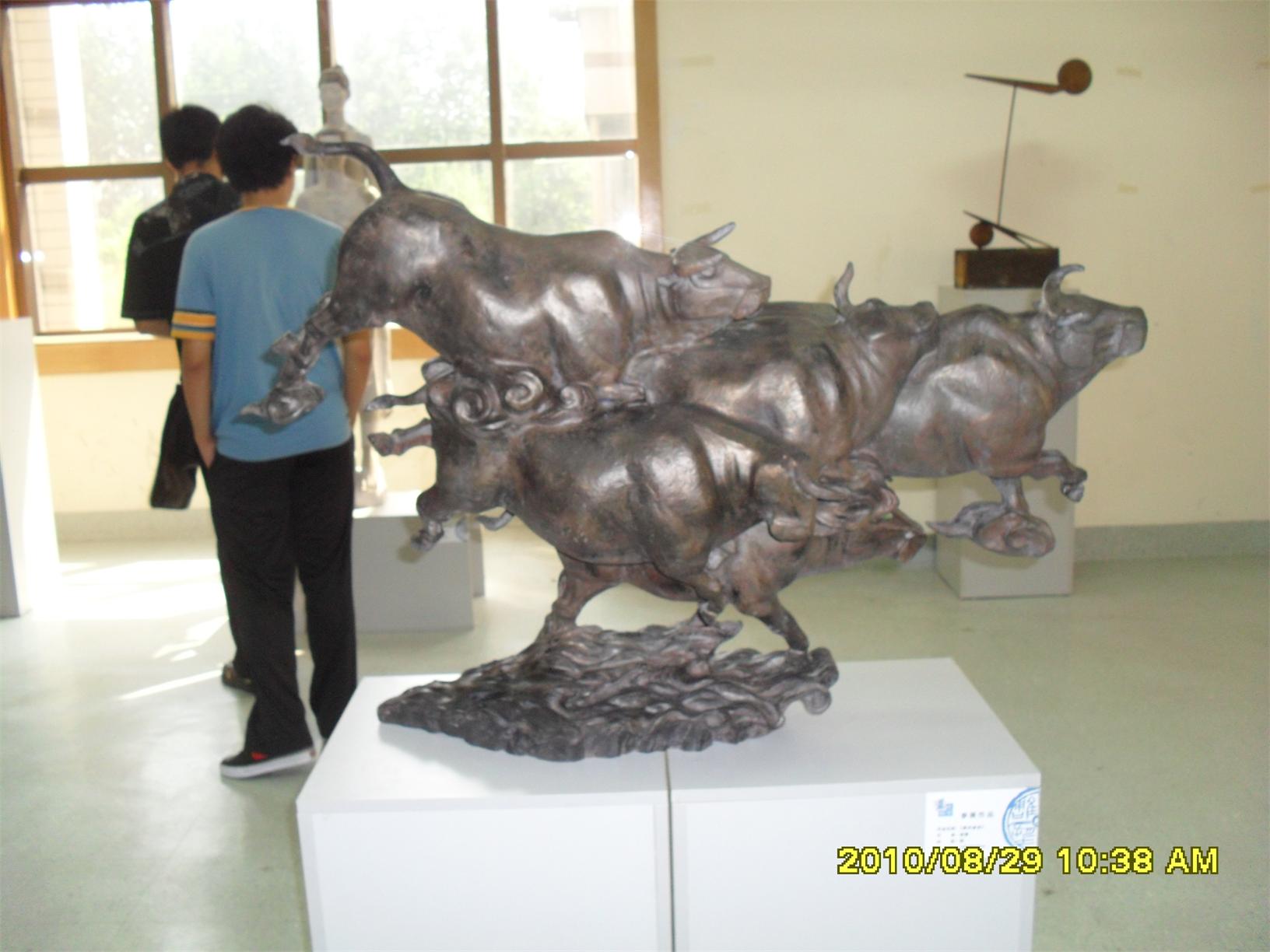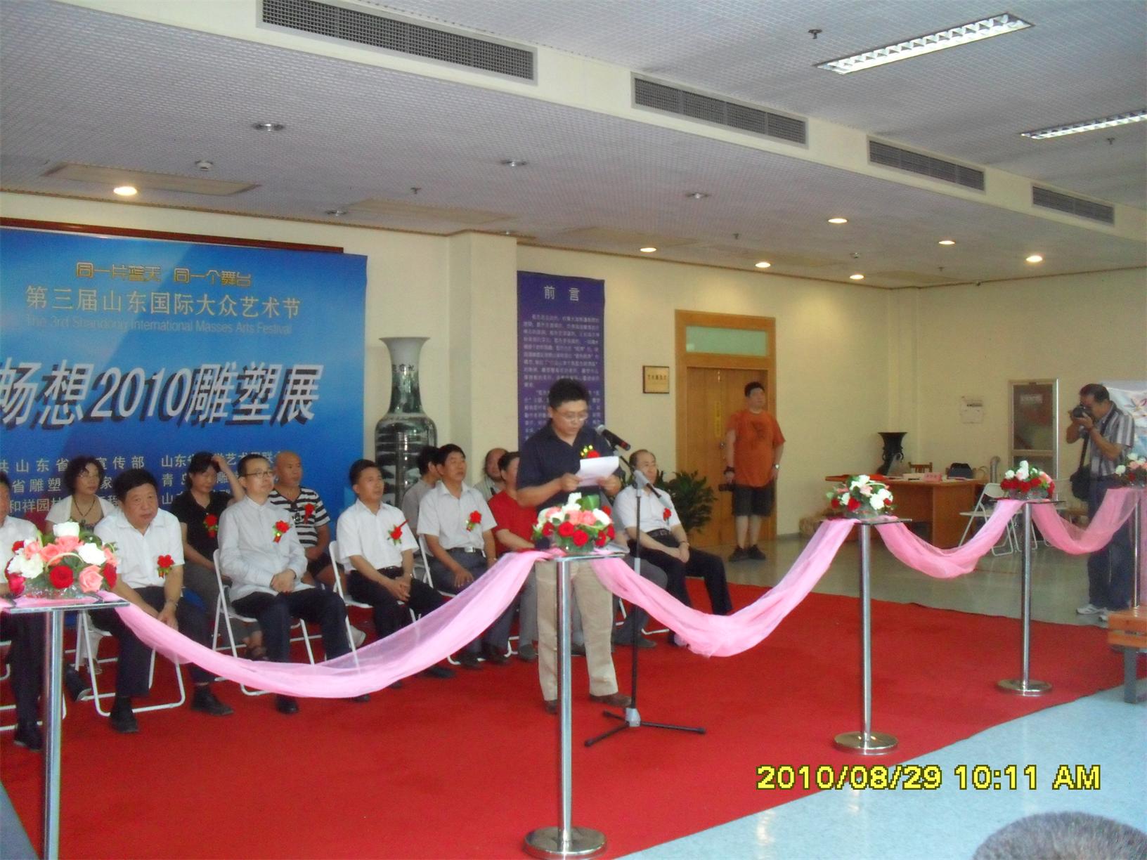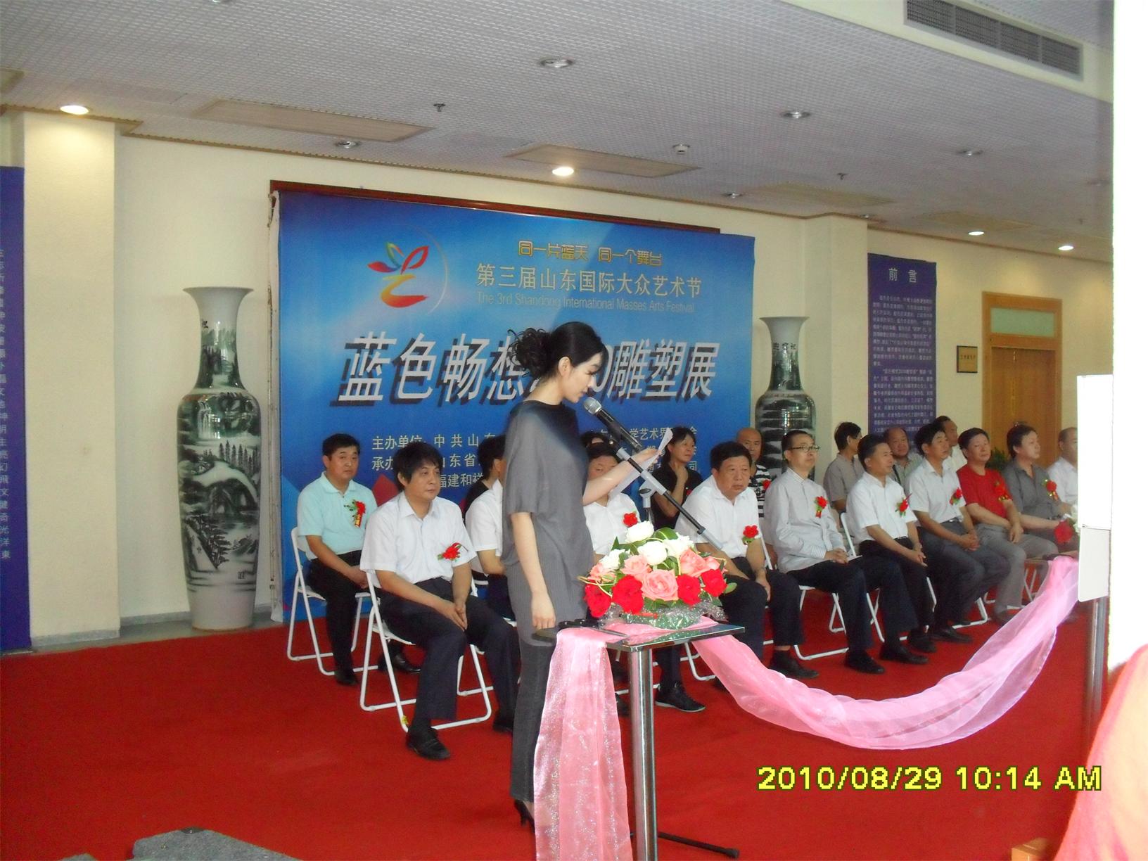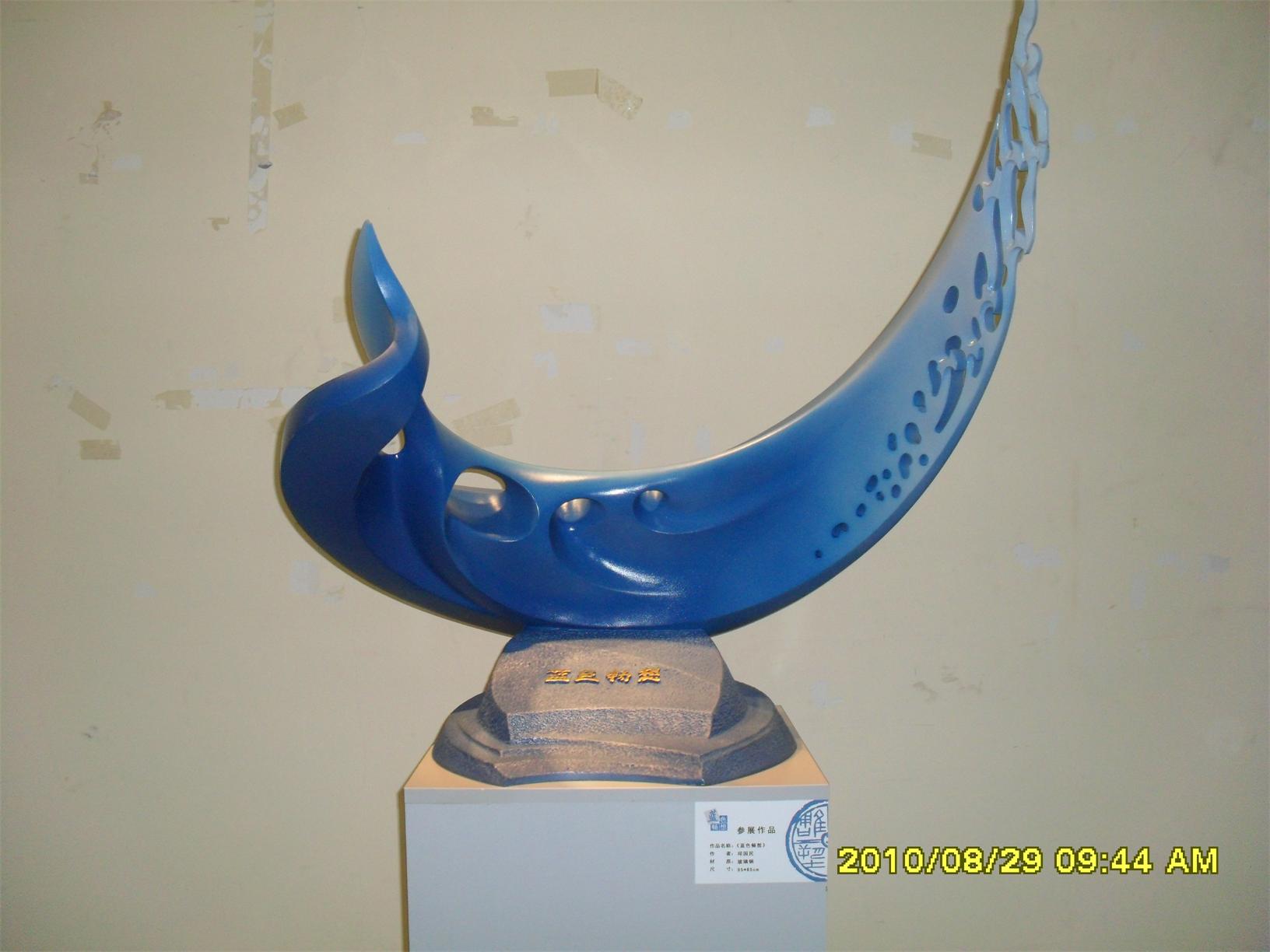 藍色暢想2010雕塑,2010年8月29日,由中共山東省委宣傳部、山東省文學(xué)藝術(shù)界聯(lián)合會主辦,山東省雕塑藝術(shù)家協(xié)會、青島雕塑家協(xié)會承辦的第三屆山東國際大眾藝術(shù)節(jié)--藍色暢想2010雕塑展在山東省圖書館隆重開幕。 "藍色暢想2010雕塑展"吸引了省內(nèi)外大批中青年雕塑家的參與,展覽共收到101位雕塑藝術(shù)家的126件入圍作品。其中省內(nèi)中青年雕塑藝術(shù)家占絕大多數(shù),圍繞"藍色"主題,堅持創(chuàng)造、創(chuàng)新理念,創(chuàng)作了大批優(yōu)秀的雕塑藝術(shù)作品,語言生動,內(nèi)容多樣,借助不同材質(zhì)和多元化的藝術(shù)風(fēng)格,對藍色精神進行了深入的闡釋。李友生的《海風(fēng)倩影》、王未的《藍色暢想》、譚信國的《蘋果系列》等作品,均對雕塑藝術(shù)內(nèi)涵進行了深入的探索。